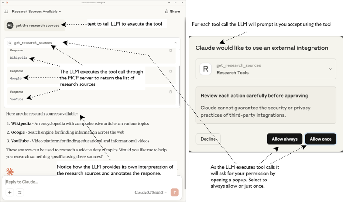 Claude desktop may consume multiple MCP servers deployed locally or remotely. The LLM that powers Claude then uses the MCP components (generally tools) to enhance its capabilities.
