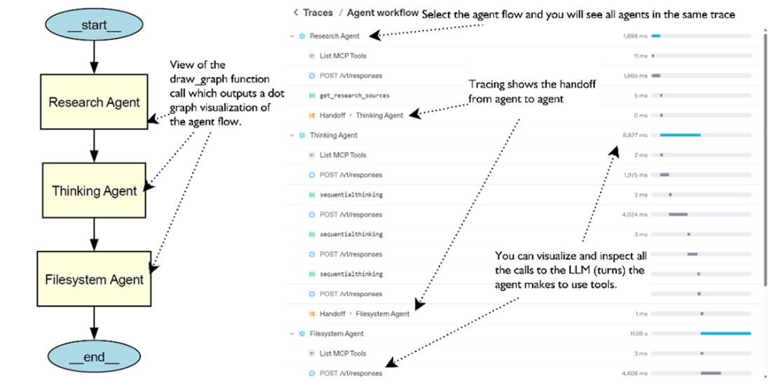 handoffsfield of the agent plus clear instructional prompts to enable internal hand-offs that require zero extra orchestration code. - Visualise complex flows early using