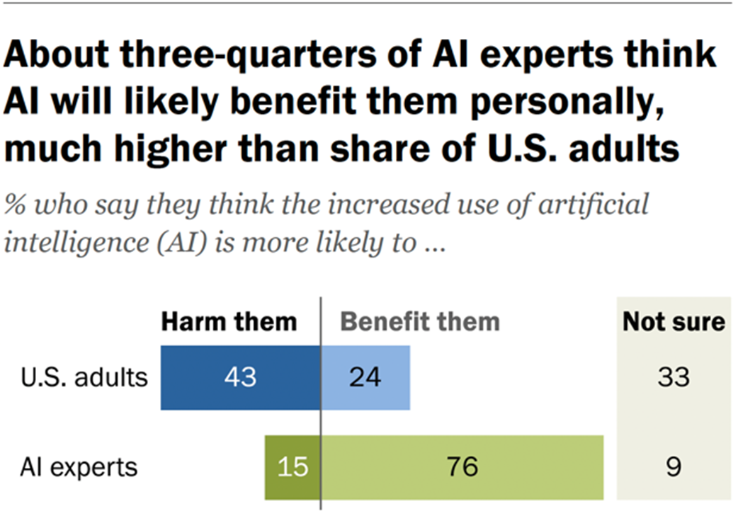 Trust in AI: experts vs general population. Source: Pew Research Center[46].