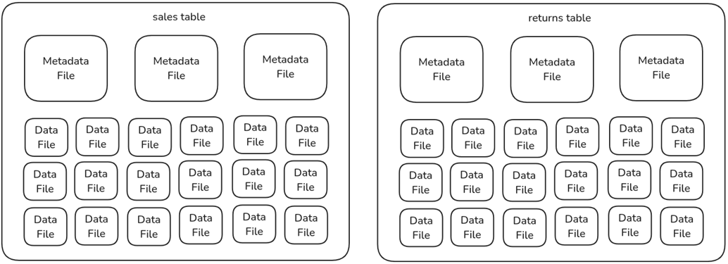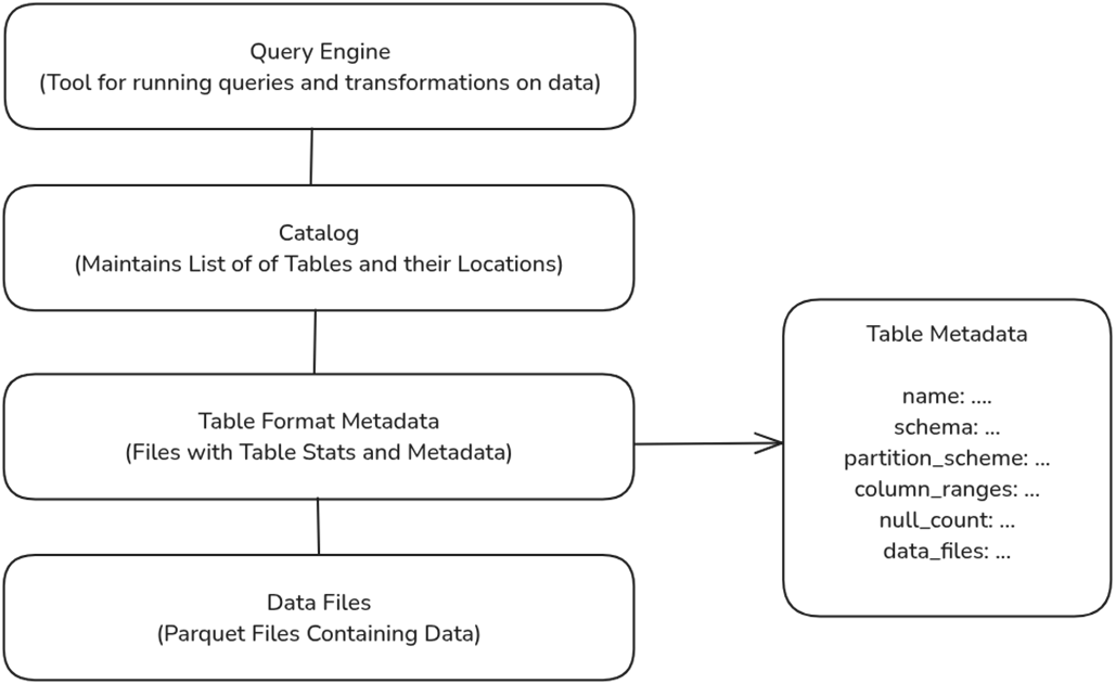 Engines use metadata statistics to eliminate data files from being scanned for faster queries.