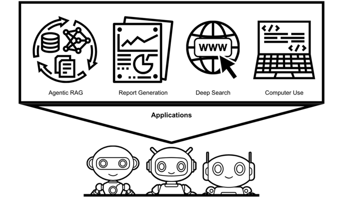 - Applications for LLM agents are many, such as report generation, deep research, computer use and coding.