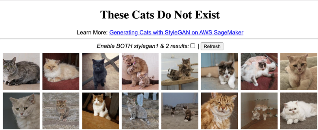 This website https://thesecatsdonotexist.com/ shows pictures of cats that do not exist in the real world! They are all AI Generated.