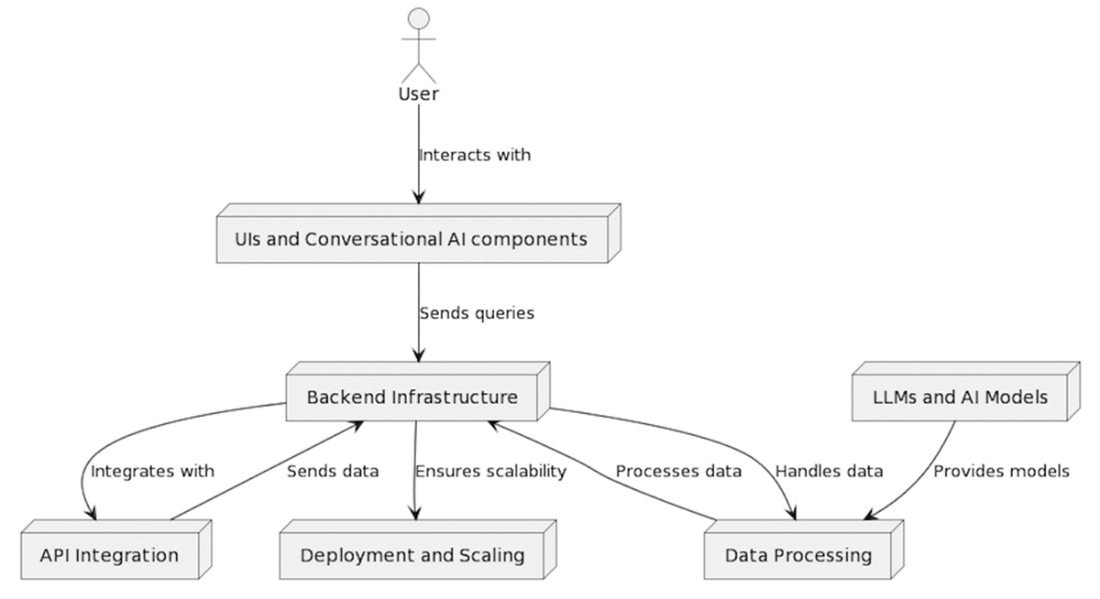 - Generative AI web apps center on powerful models like large language models (LLMs) to create content from user input. The apps require a full supporting ecosystem to integrate with the model, including UI and conversational AI components, backend infrastructure, data processing pipelines, API integration, and deployment and scaling mechanisms.