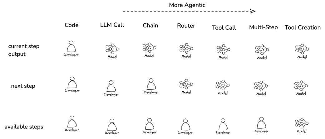 Progression of agency levels in LLM applications.