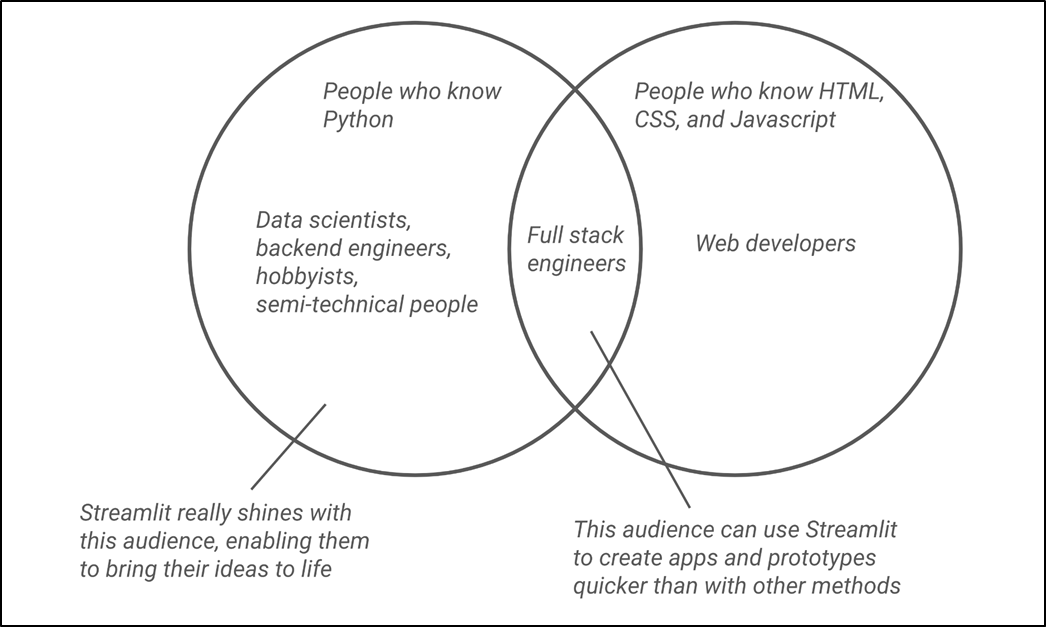 - You shouldn't use Streamlit for large-scale apps meant for millions of users, or apps that require a high level of UI customization.