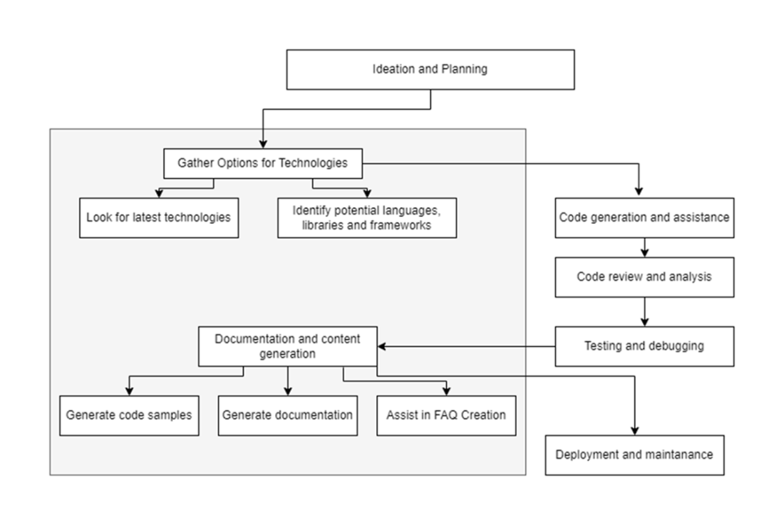 Generative AI tools play a big role in the planning process. From ideation and planning, to choosing a technology, to building the software and deploying it. Each of these steps can be enhanced with AI tooling.