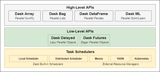 Dask brings native scalability to the Python data stack and offers four key advantages: it’s fully in Python and scales NumPy/Pandas/Scikit-learn; it works on both a single machine (medium data) and clusters (large data); it can parallelize general Python workflows via low-level APIs; and it has low setup and maintenance overhead.How is Dask structured under the hood?