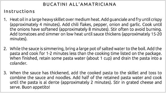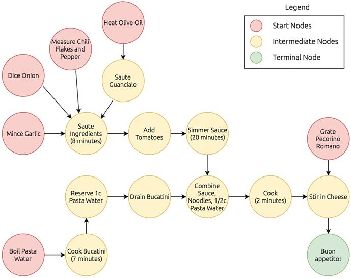 The full directed acyclic graph representation of the bucatini all’Amatriciana recipe.