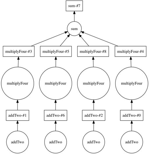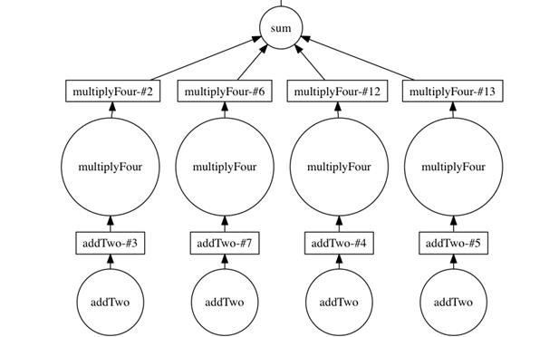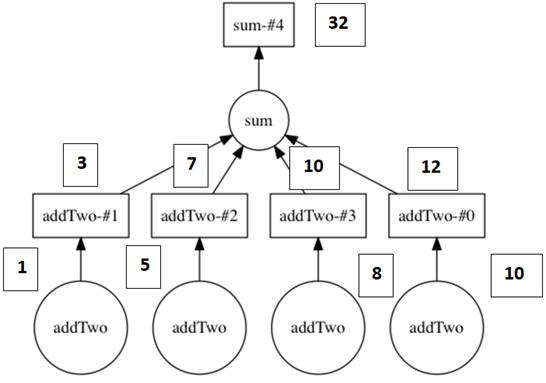 The DAG from Figure 2.5 with the values superimposed over the computation.