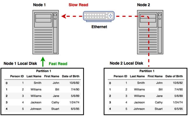 Data locality brings the computation to the data in order to minimize network and IO latency.