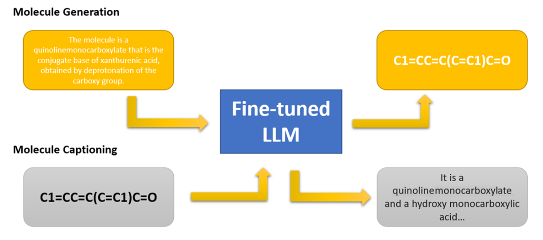 A LLM trained for tasks on molecule structures (generation and captioning).