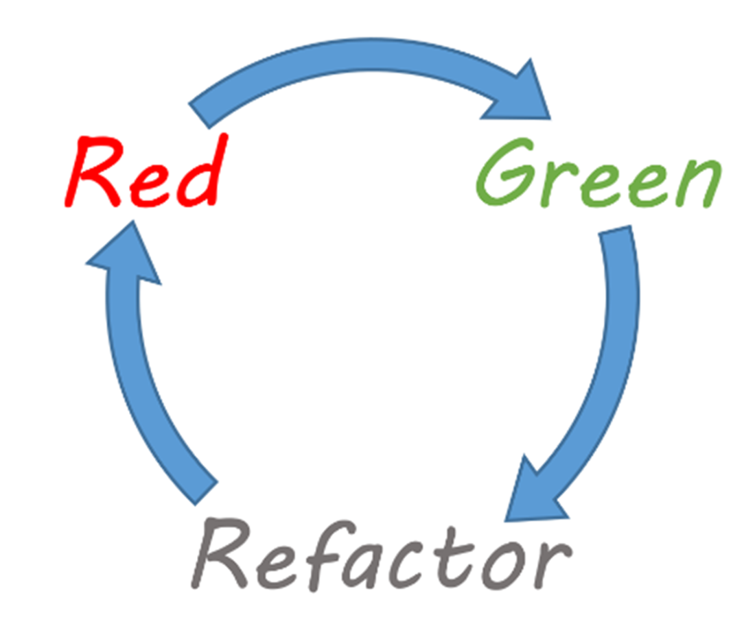 The TDD cycle starts by writing a test and seeing it fail (Red). Then we write just enough code to have the test pass (Green). Finally, we refactor the code to improve its structure