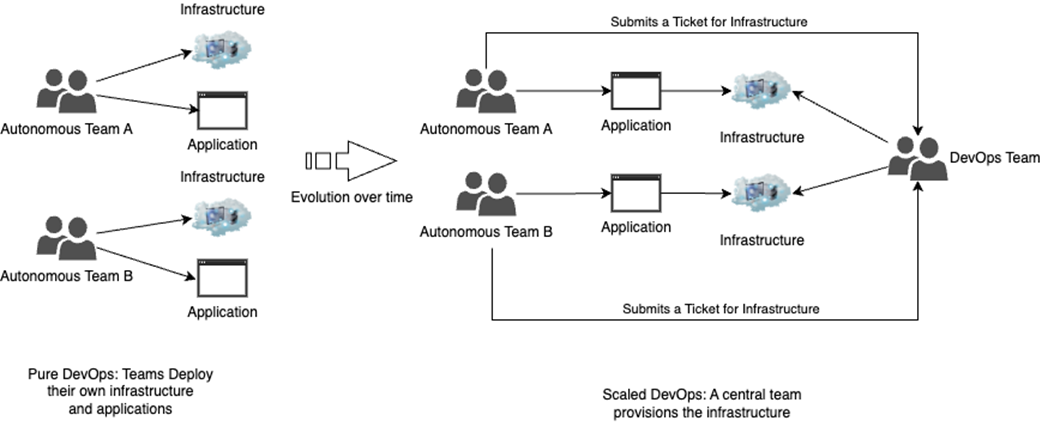 Companies adopting a DevOps culture often start by enabling development teams to deploy their own infrastructure.