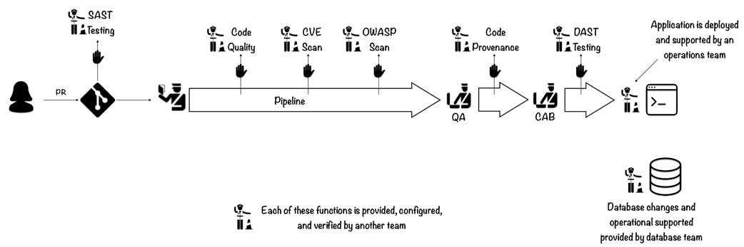 The application deployment process is fragmented, with multiple teams owning various requirements. A pipeline has been created to automate several steps, but a separate team also owns this process. A release can sometimes take weeks to complete.