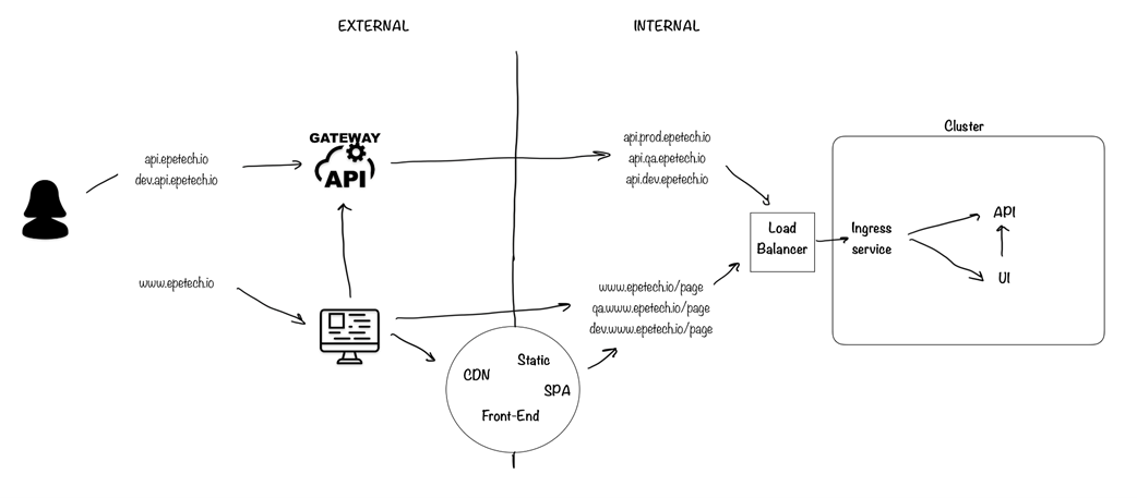 Our engineering platform must provide a self-serve experience for each internal customer (development team) to configure their service to receive traffic based on our company’s "product" decision for how the DNS domain and subdomain names reflect our digital products.