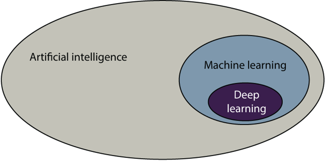 To ground the field, the chapter distinguishes artificial intelligence (computers making decisions), machine learning (computers making decisions from data), and deep learning (a powerful ML subfield using neural networks). It connects ML to how humans decide: we use logic or we rely on experience; ML formalizes the latter. This becomes the remember–formulate–predict framework: remember past data, formulate a rule (a model), and predict on new cases. Along the way, it clarifies core terms—models as decision rules learned from data, algorithms as procedures for building models, and features as the data attributes models use—while stressing that good models are those that generalize to unseen data.