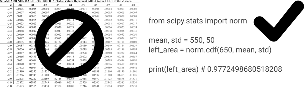 Instead of the classroom approach using lookup tables, we will use Python to simplify our statistics calculations.