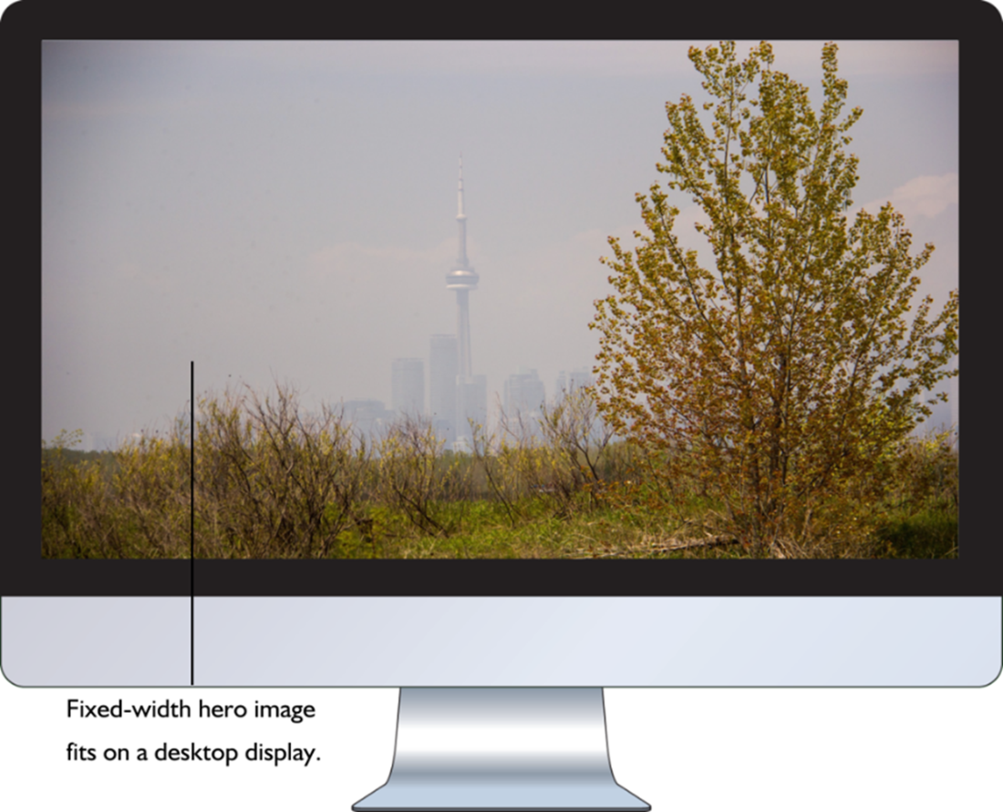 The fixed-width hero image looks good on a desktop.