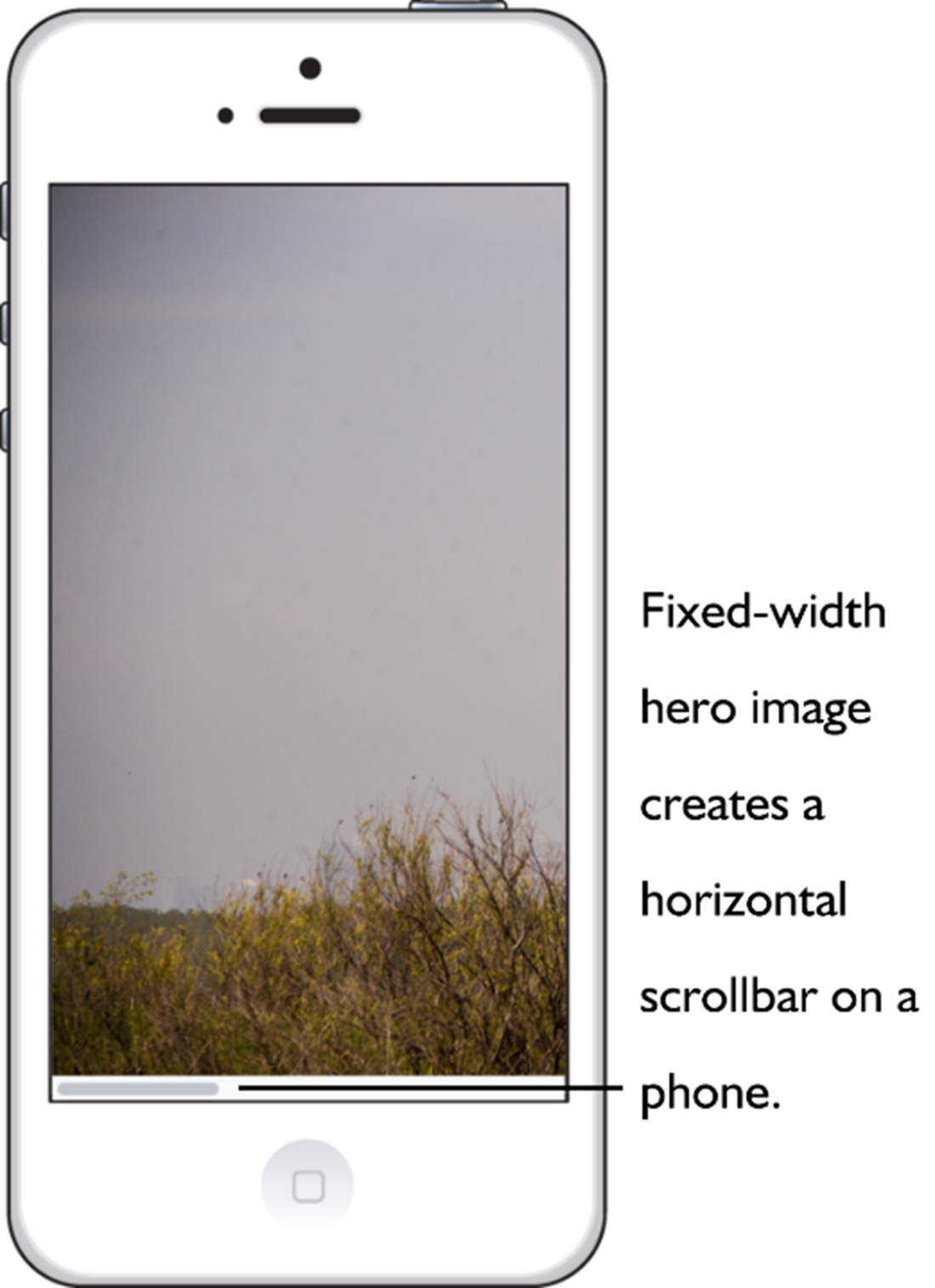 The fixed-width hero requires a huge horizontal scroll on a phone.