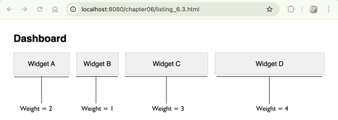 Use JS when CSS can’t: - Complex conditional logic or DOM reordering. - Runtime calculations beyond CSS math (e.g., sizing based on live data). - Responding to interactions/data streams (charts, canvases). Example: compute proportional widths from weights and set each widget’sflex-basis so space is allocated dynamically.