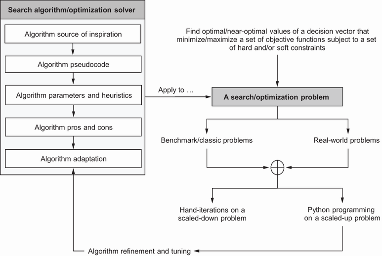 The book introduces each algorithm with intuition and pseudocode, identifies parameters and heuristics, and discusses pros/cons and adaptations. You first work small, hand-solved toy cases to see step-by-step mechanics, then scale up to real datasets with Python implementations and exercises to tune, evaluate performance, and study scalability.What are the basic ingredients of an optimization problem?
