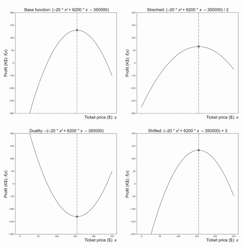 Ticket pricing problem—the optimal pricing that maximizes profit is $155 per ticket.