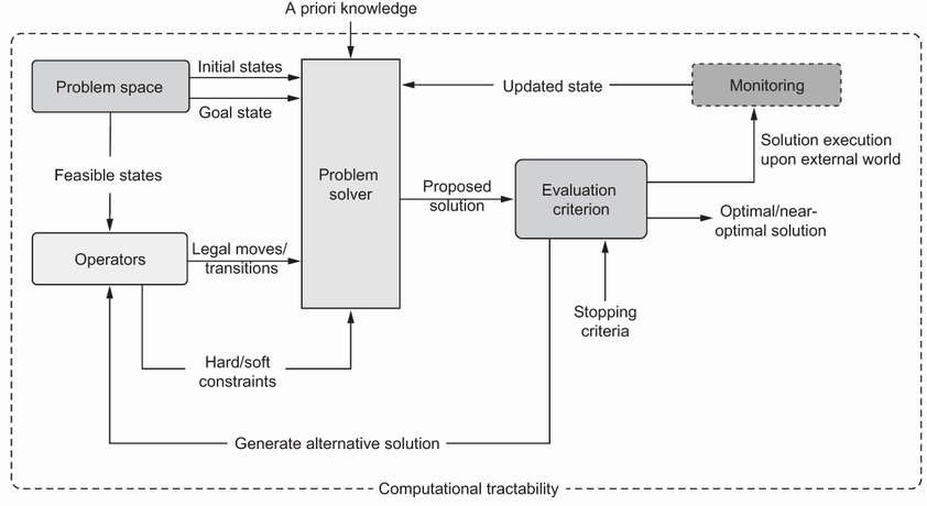 - Well-structured problems (WSPs): have clear evaluation criteria, explicit problem spaces, defined operators, tractable computation, and readily available information. Example: a robotic pick-and-place cycle in a static, fully observable cell with a clear goal and timing criteria.