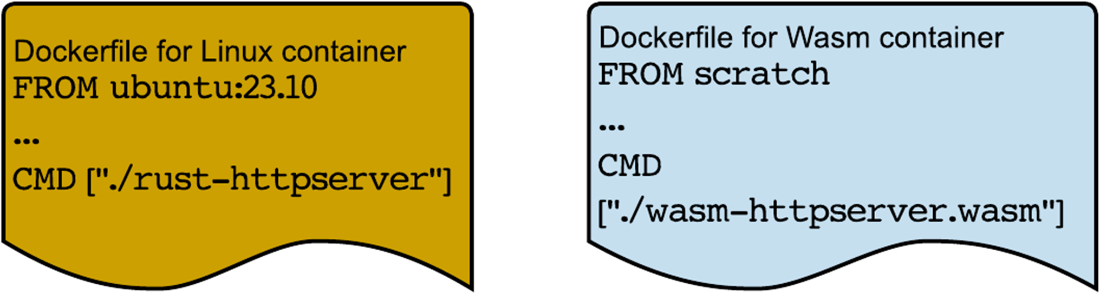 Dockerfiles for a Docker container and a Wasm container