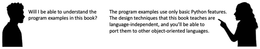 - The design principles and design patterns in this book are based on the object-oriented programming concepts of abstraction, encapsulation, inheritance, and polymorphism.