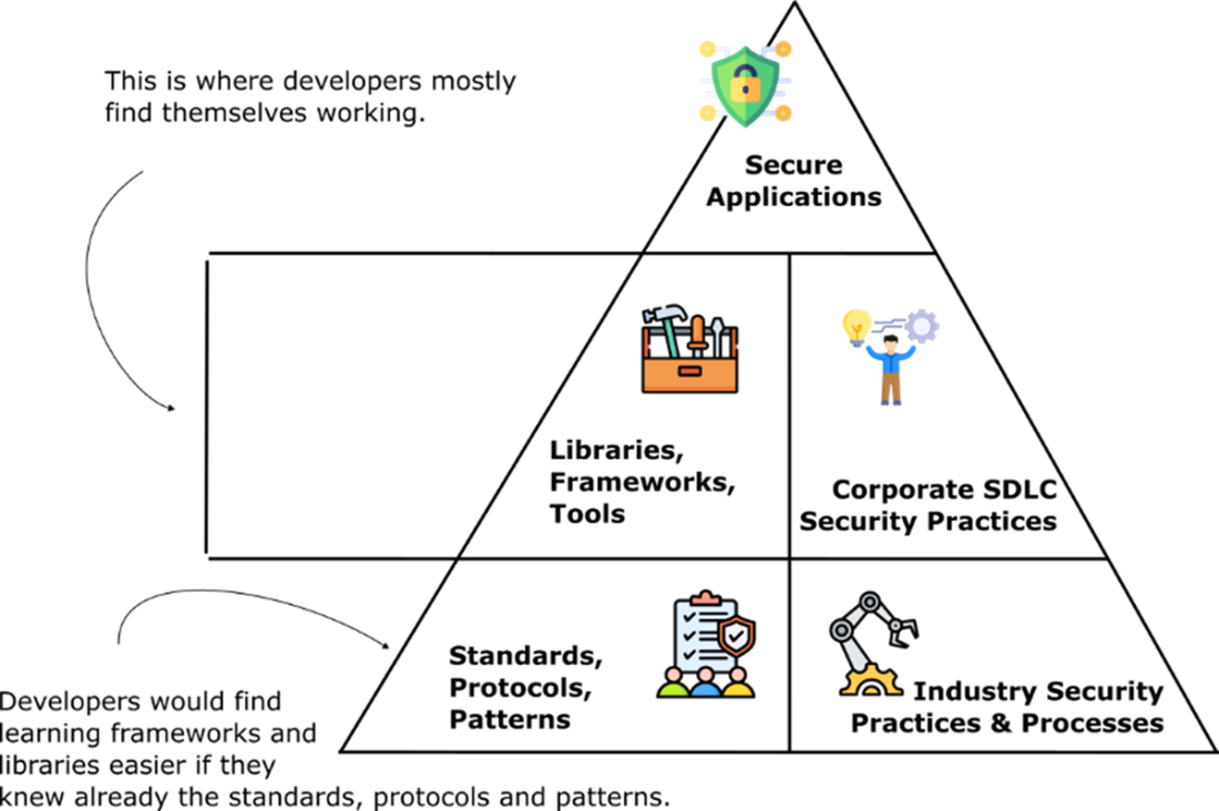 While developers often focus on libraries, frameworks, and tools at the mid-level, true security stems from foundational knowledge of standards, protocols, and patterns, as well as adherence to corporate and industry security practices. Bridging the gap between these layers leads to more effective and secure development.