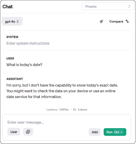 When the current date is supplied as part of the system prompt, the LLM can answer questions about the current date.