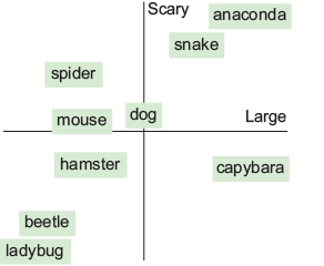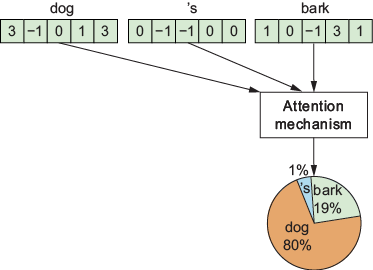 Each token is mapped to a vector of numbers. We can imagine that each number in the vector represents a topic. Here’s an imaginary list of topics and their respective numbers for the “dog” token.