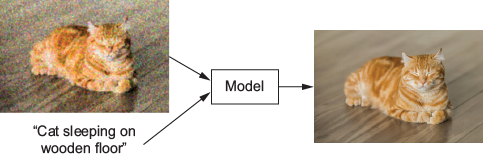 A diffusion model is trained to improve a corrupted image paired with its caption.
