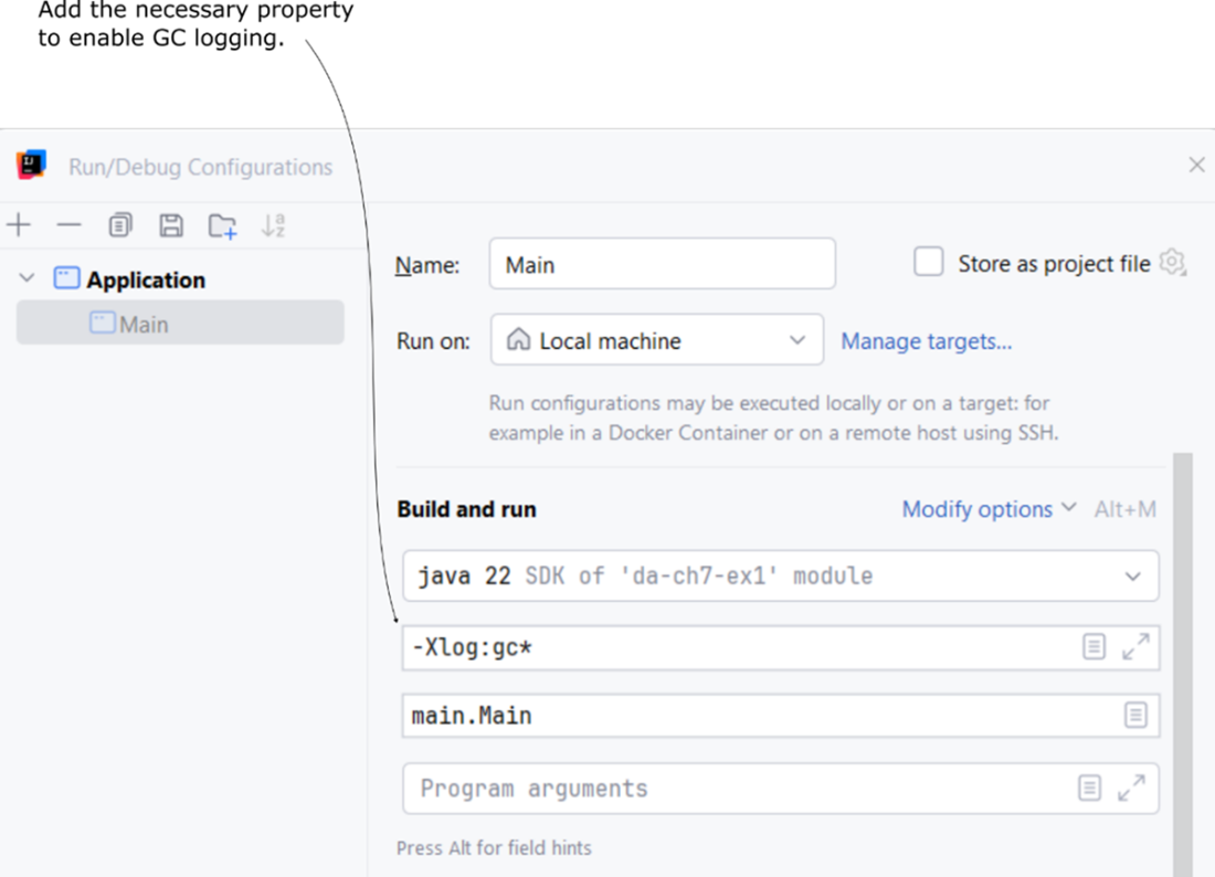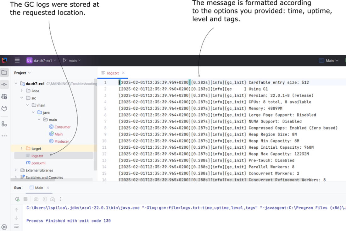 - Example: java -Xlog:gc*:file=gc.log:time,uptime,level,tags -jar yourApp.jar