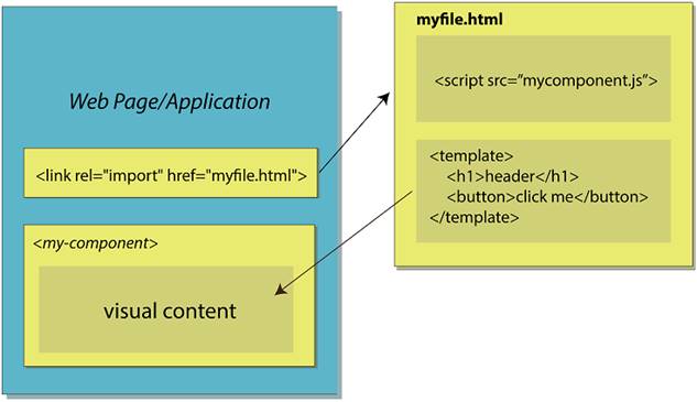 With HTML Imports, a file containing your component definition and your component’s markup could be imported right into your document.