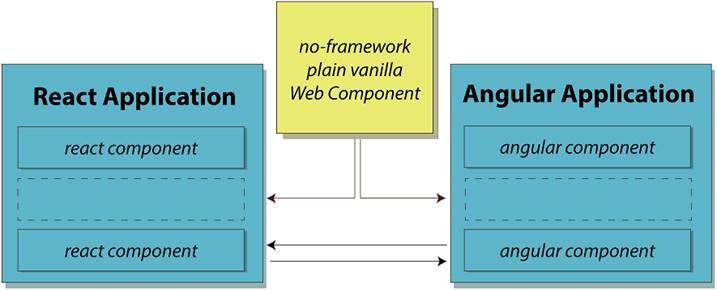 The chapter then moves beyond single components to composing full applications. It treats components like any DOM element: design clear properties and methods, reflect attributes to properties when appropriate, and communicate via native and custom events. For cross-tree messaging, an event bus can complement or replace DOM bubbling, and microframeworks can add targeted capabilities without imposing a heavy architecture. Looking ahead, components compiled from React, Angular, Vue, or tools like Stencil and Svelte can interoperate as standard elements, and even WebAssembly-backed components may fit the model. The takeaway: choose what fits your team and project, but consider Web Components a viable, standards-based foundation for today and the future.