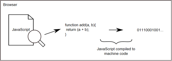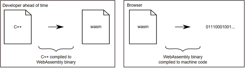 Wasm file loaded into a browser and then compiled to machine code diagram